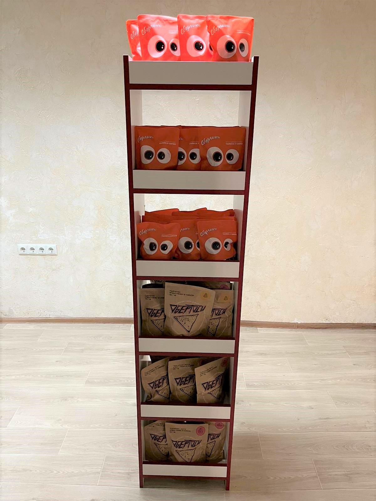 - Вони створюють унікальний стиль що сприяє збільшенню впізнаваності вашого бренду серед покупців. У разі встановлення брендованих стелажів у різних торгових точках, вони привертатимуть увагу покупців саме до вашої продукції серед інших пропозицій від конкурентів.