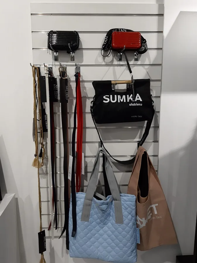 Гибкость экономпанелей позволяет разместить крючки, держатели и полки для сумок, ремней, украшений и других аксессуаров. Каждый товар будет на видном месте!