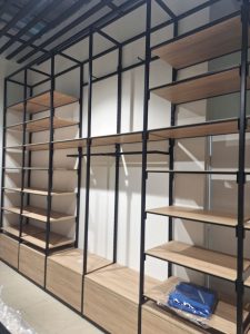 • пристінні стелажі з полицями, вішаками та ящиками;