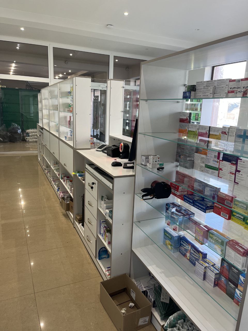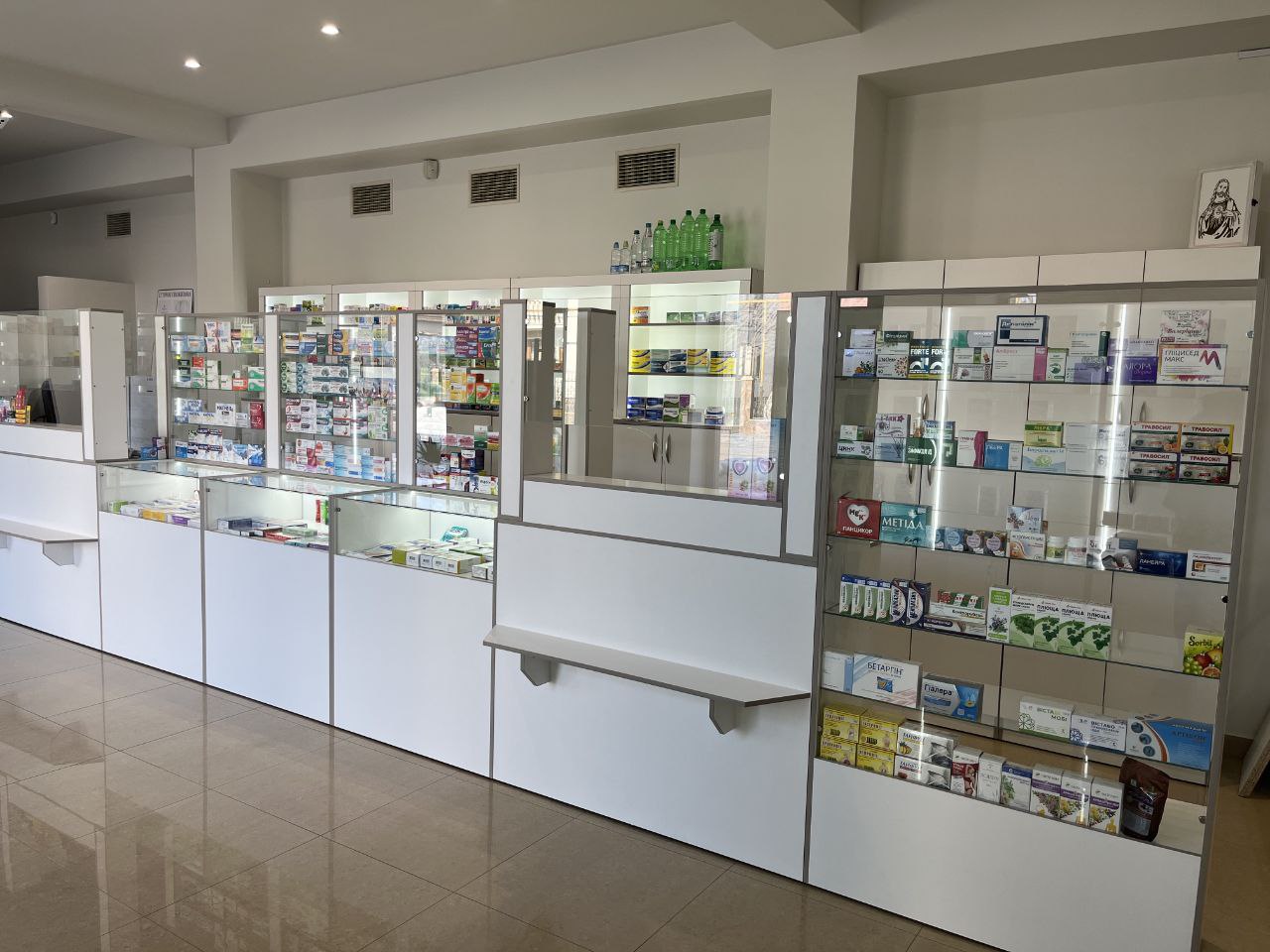Проєкт реалізовано з урахуванням усіх побажань замовника та особливостей приміщення. Аптека отримала сучасний, функціональний і продуманий простір як для клієнтів, так і для персоналу.