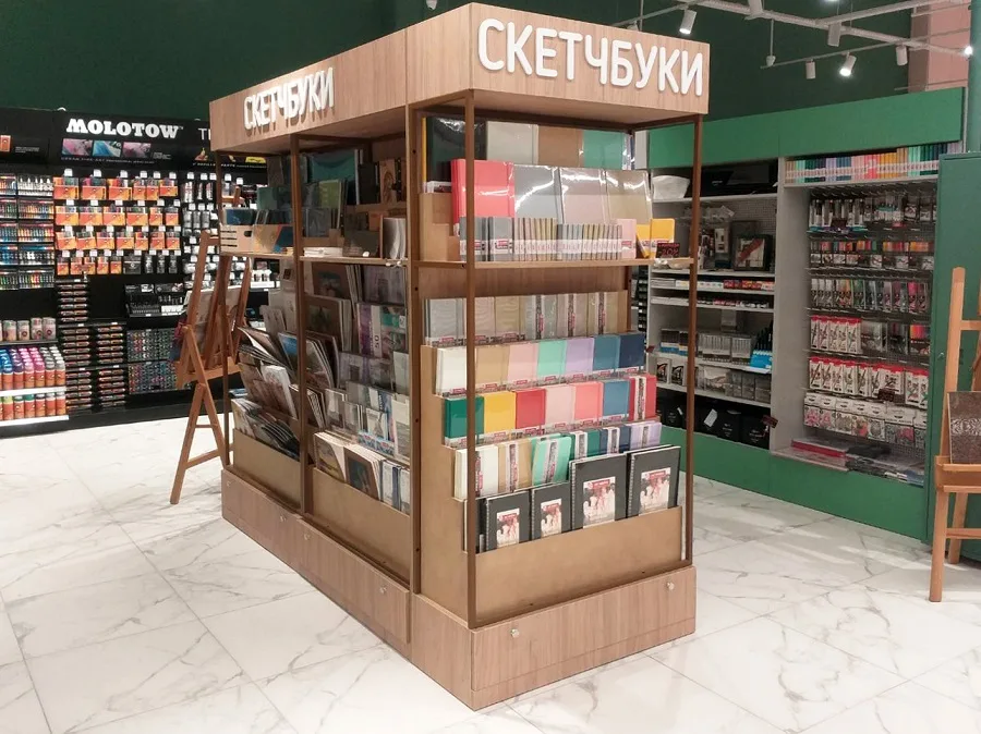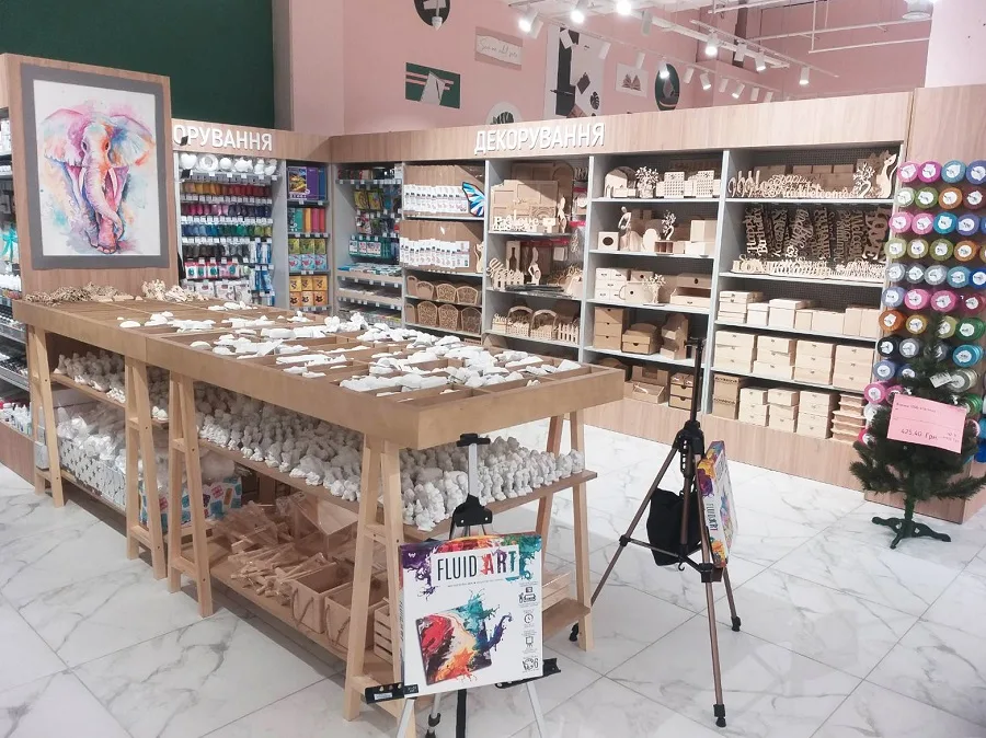 Звісно, торгове обладнання для такого величезного і різноманітного асортименту товарів повинно бути якісним та зручним. Ми легко з цим впорались, тому що вже добре вивчили вимоги замовника, підібрали потрібні кольори матеріалів, відпрацювали планування меблів у різних приміщеннях.