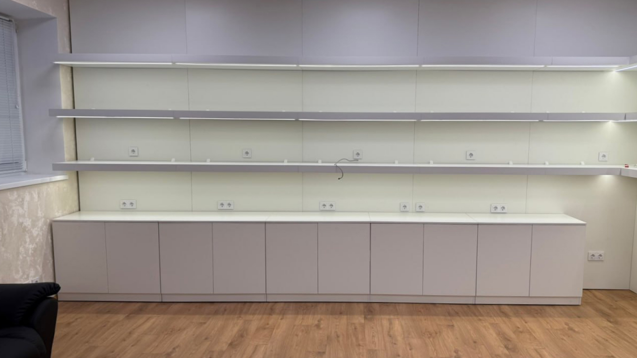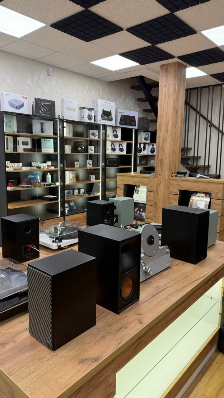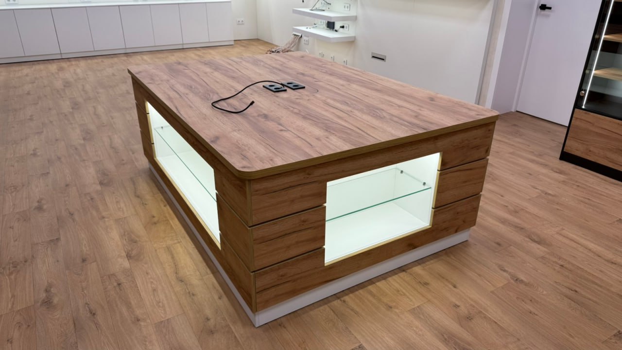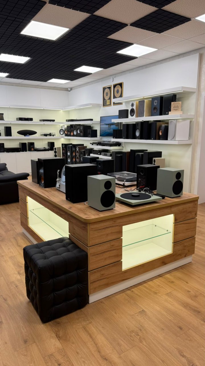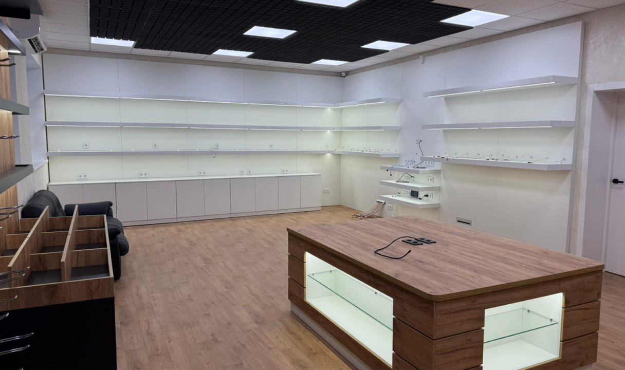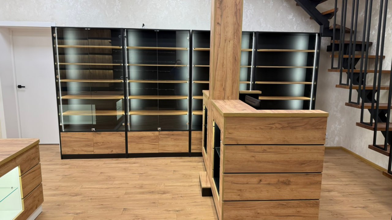 Были созданы несколько тематических зон с учетом специфики товаров, а также изготовлены специальные торговые столы и стеллажи для техники.