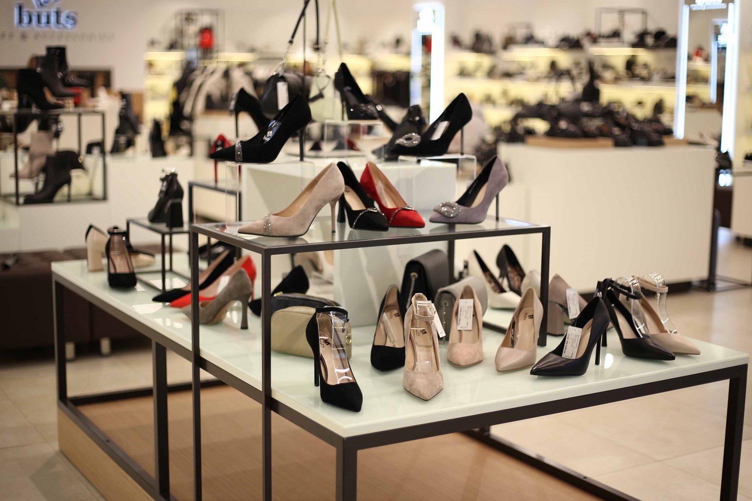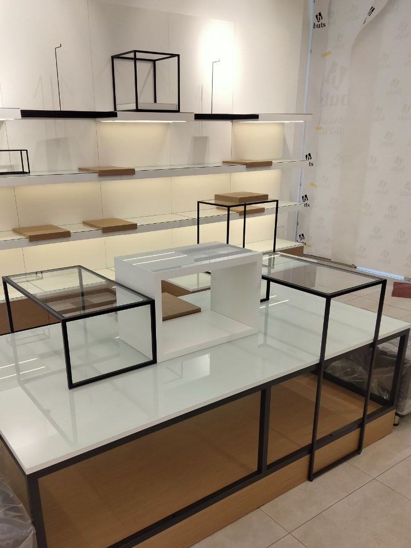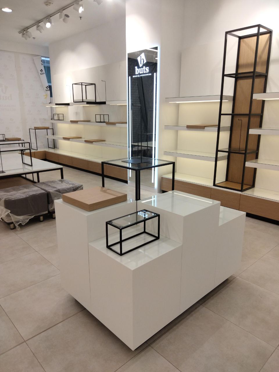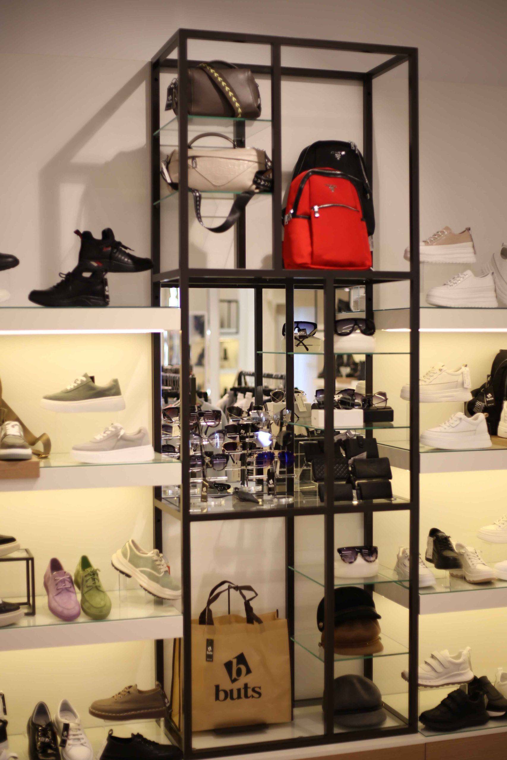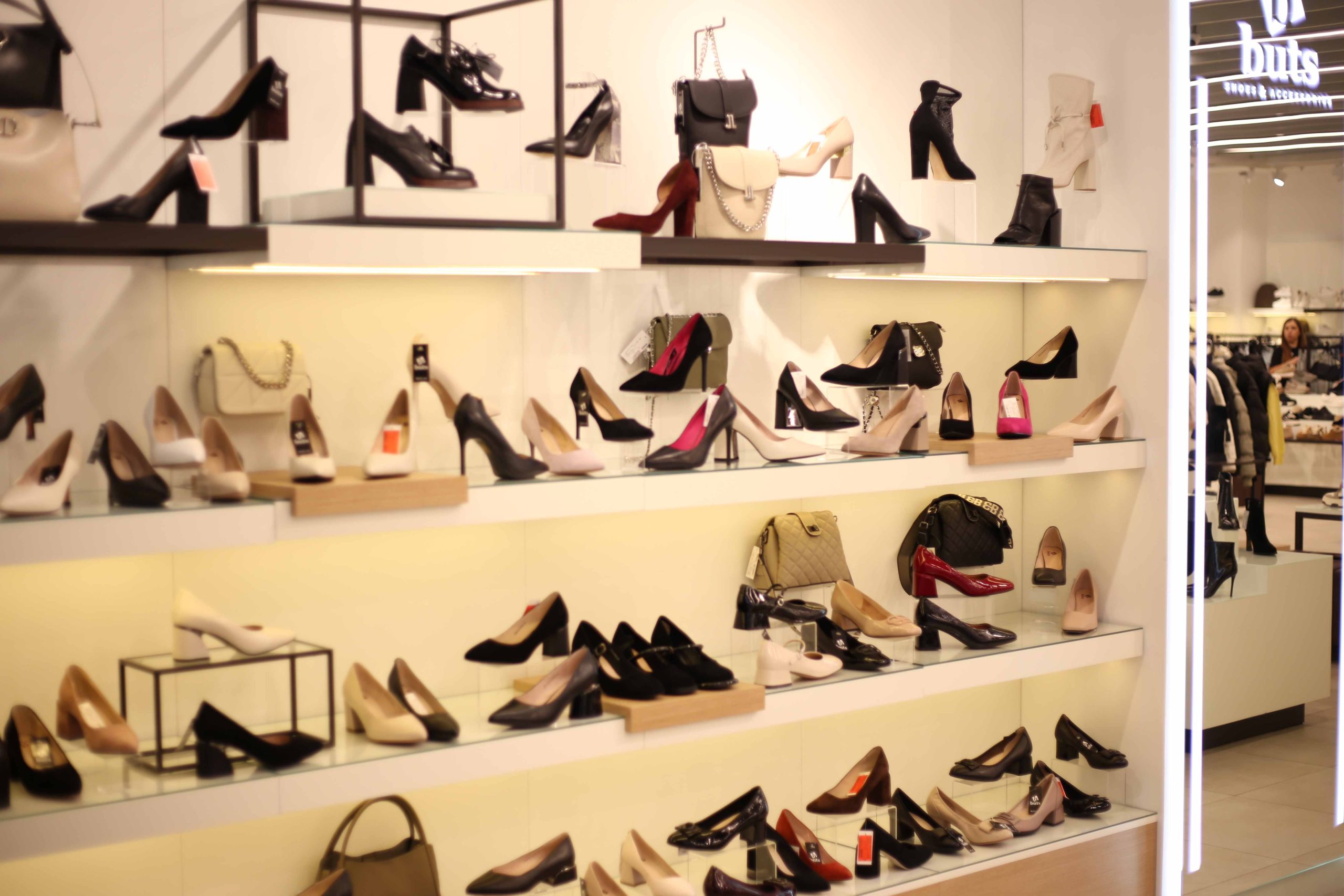 Сеть магазинов обуви Buts обратилась к нам с задачей создать дизайн и изготовить торговое оборудование для нового магазина в ТРЦ Hollywood, г. Чернигов.