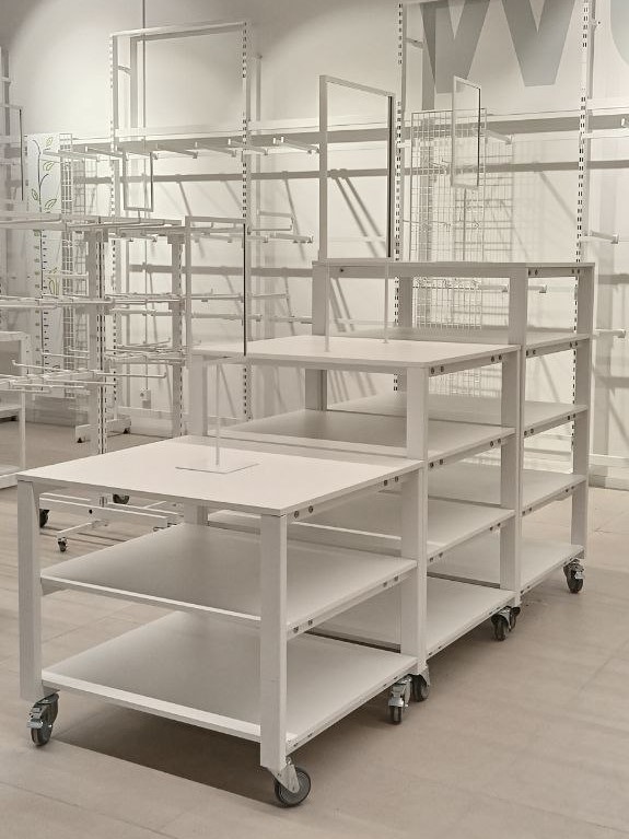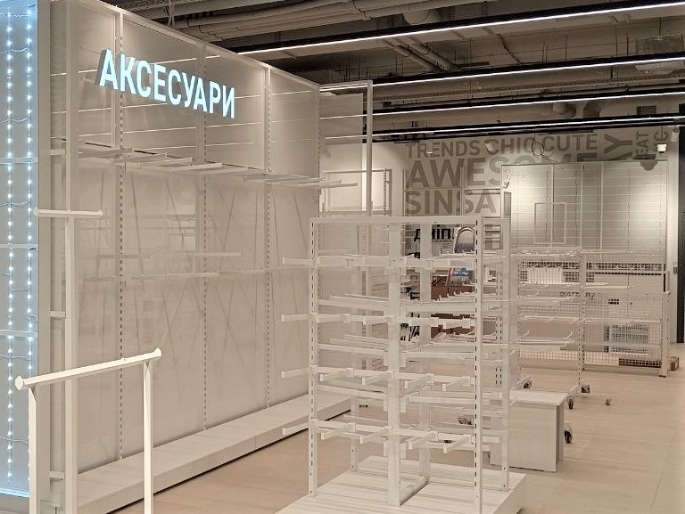 Этот проект стал для ROMKOS масштабной работой и мы гордимся сотрудничеством с известной международной компанией. Наше торговое оборудование, изготовленное по техническому заданию заказчика, состоит преимущественно из крепких металлических конструкций, выдерживающих высокие нагрузки.