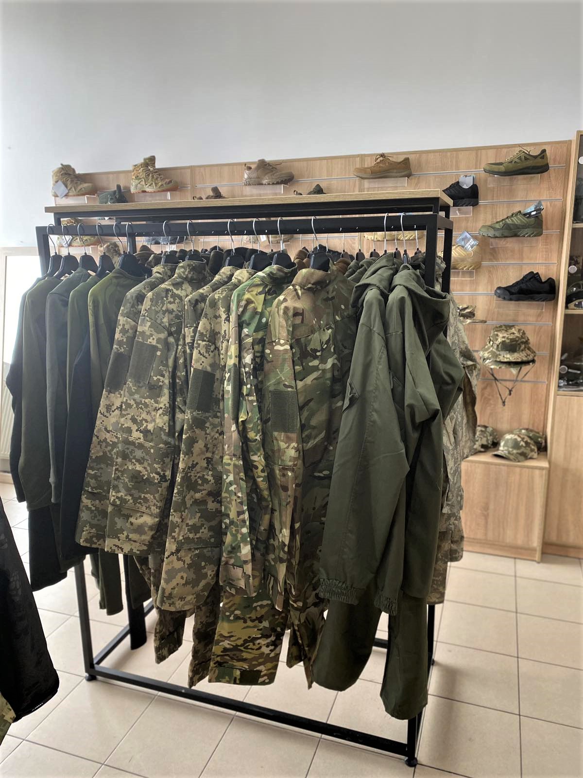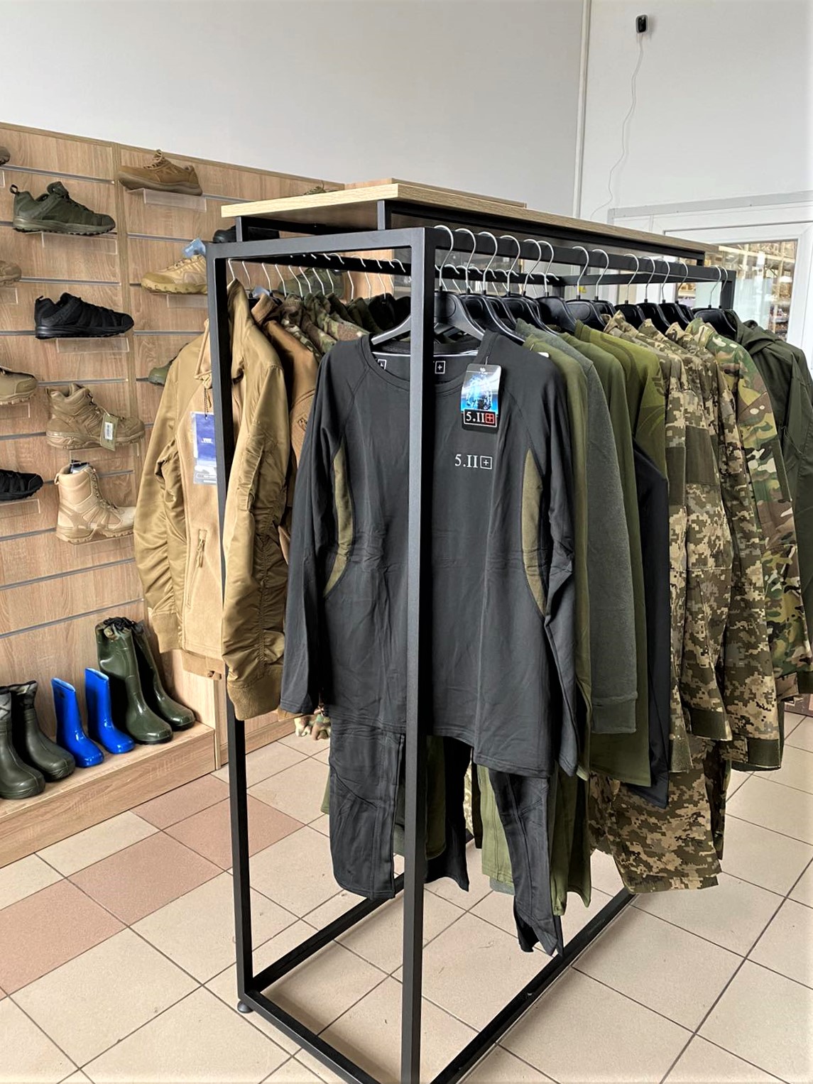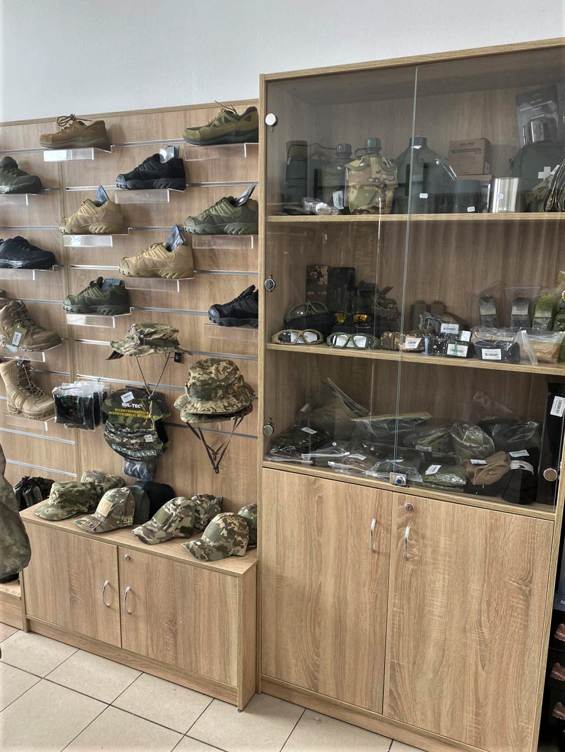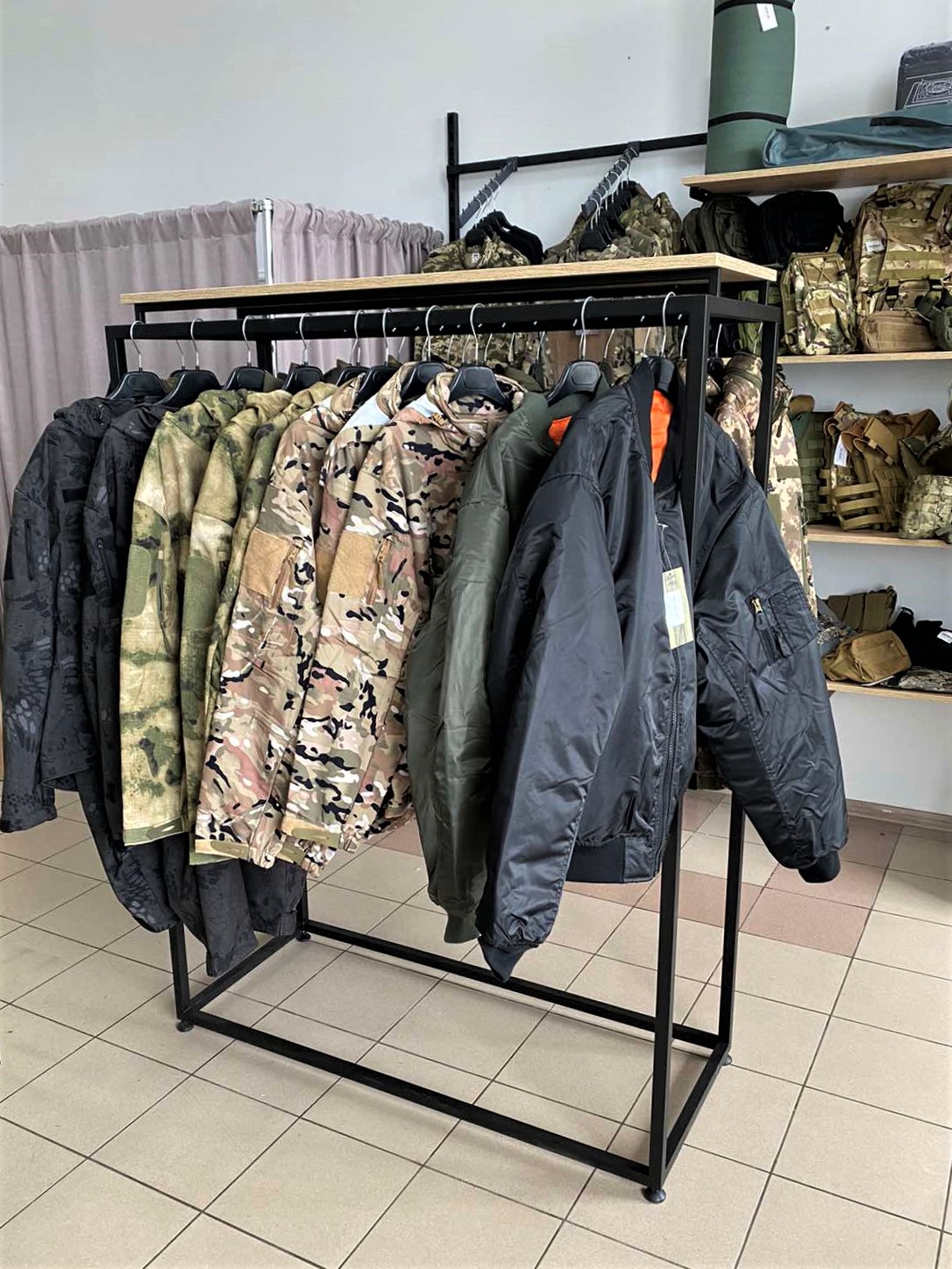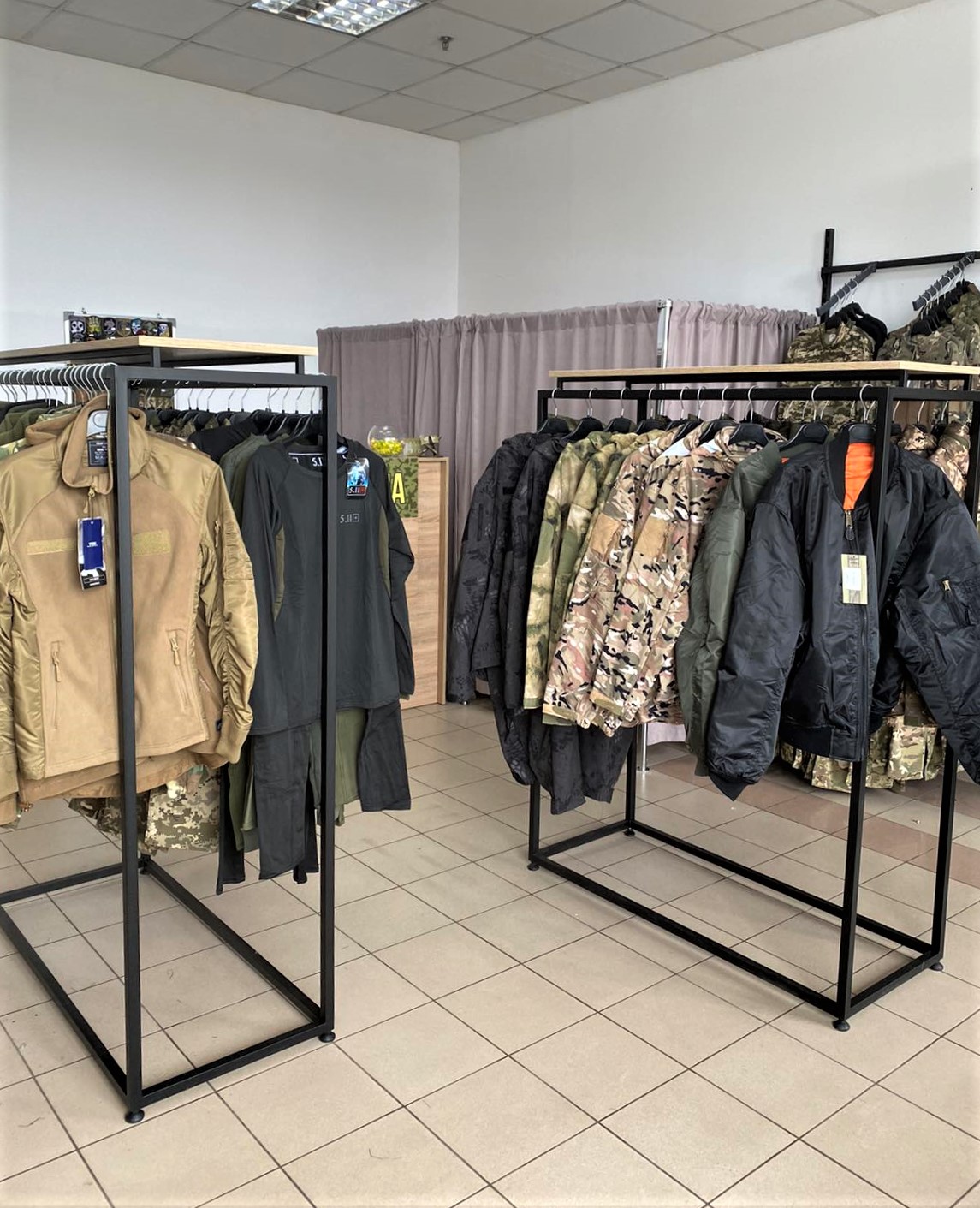 Магазин военной одежды и аксессуаров «Пиксель UA» полностью оборудован торговой мебелью стандартной серии от производителя ROMKOS.