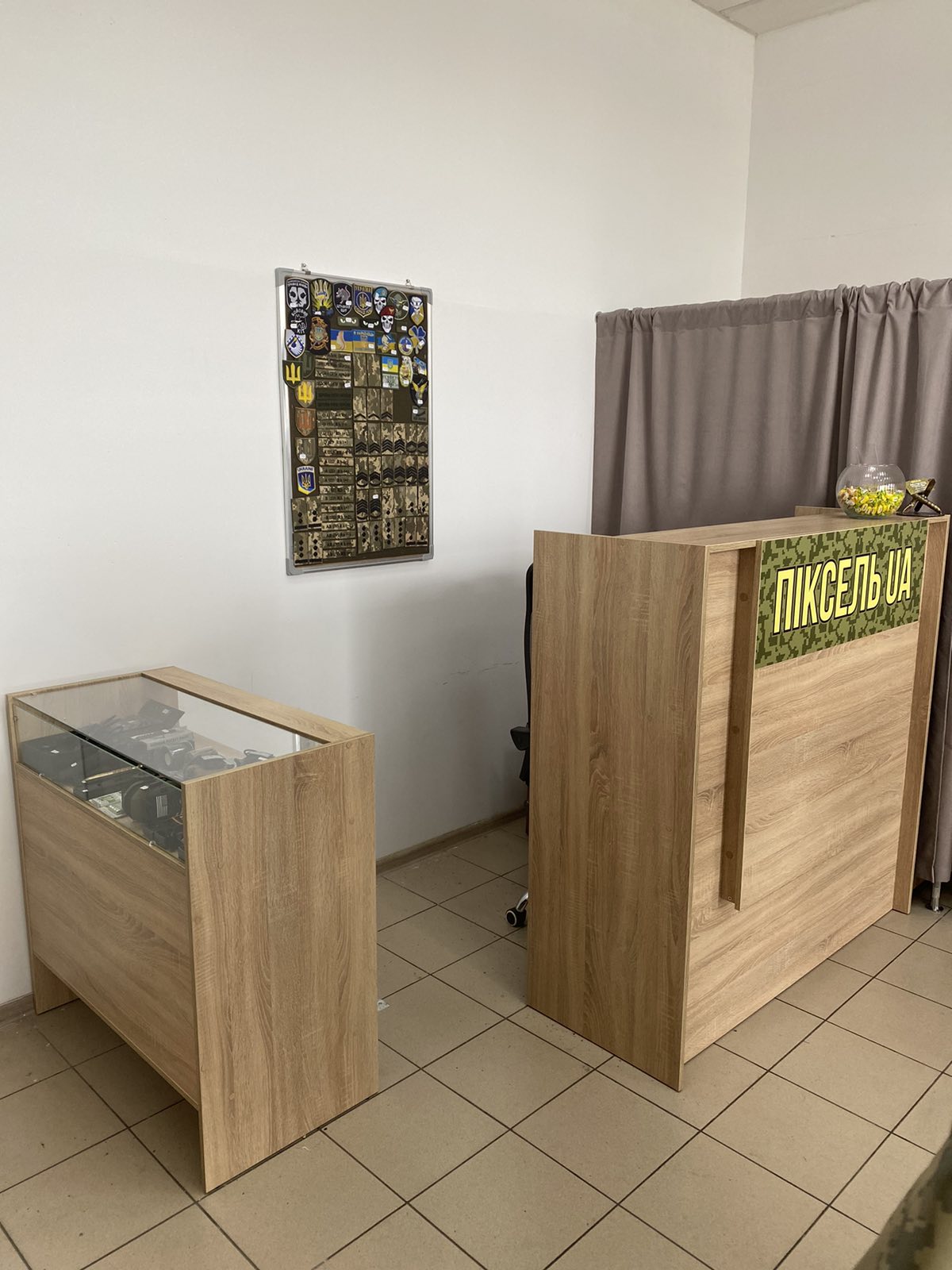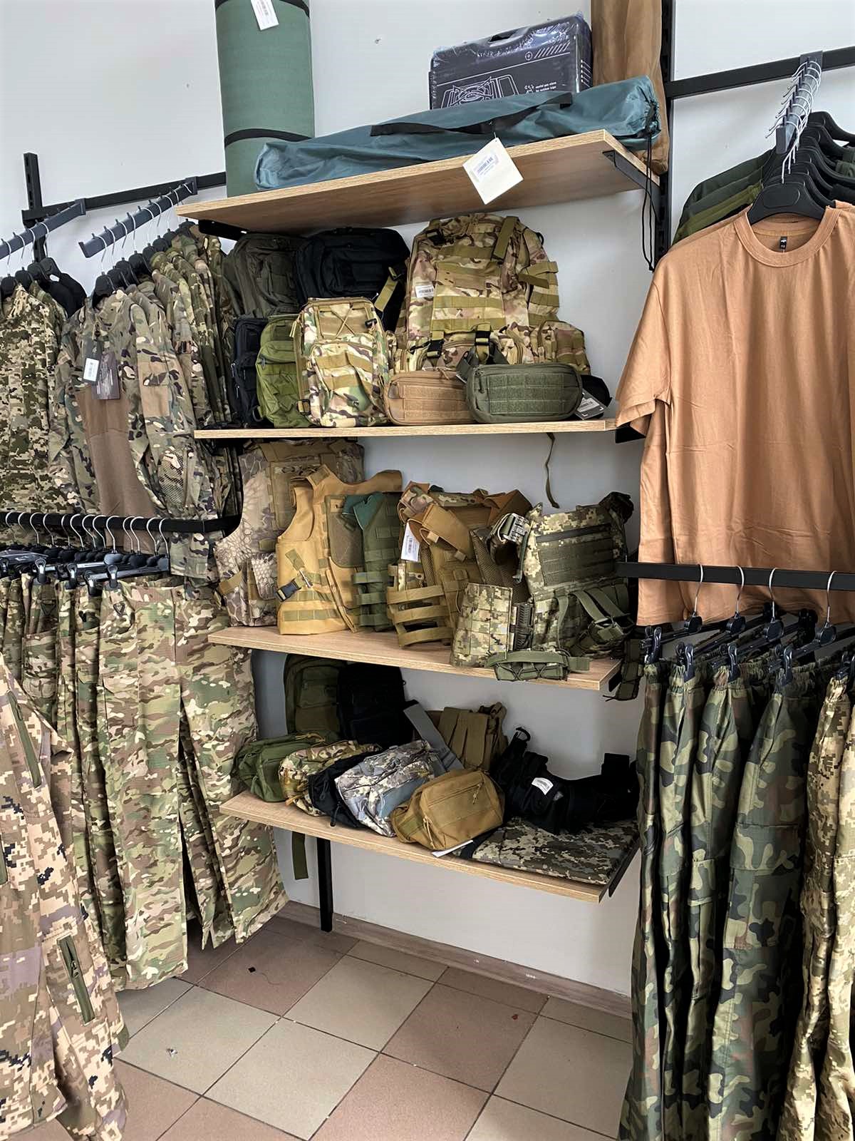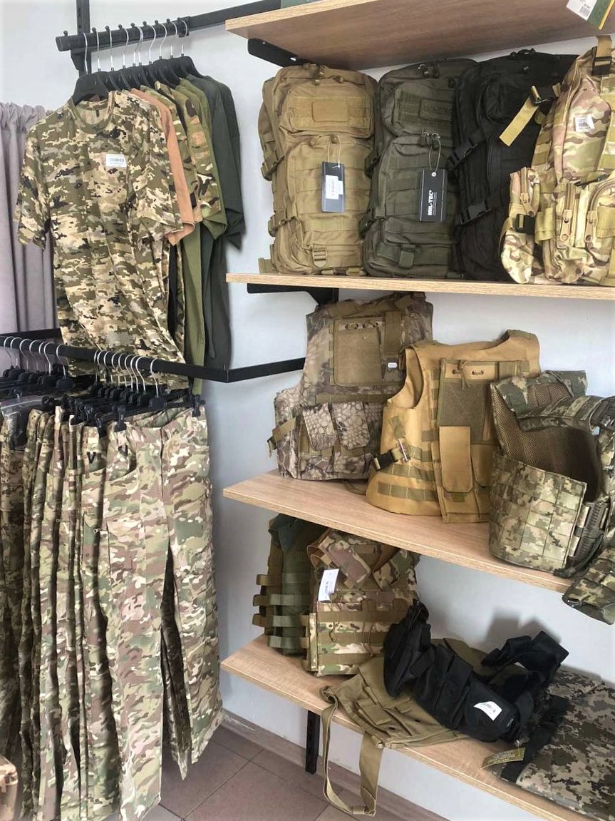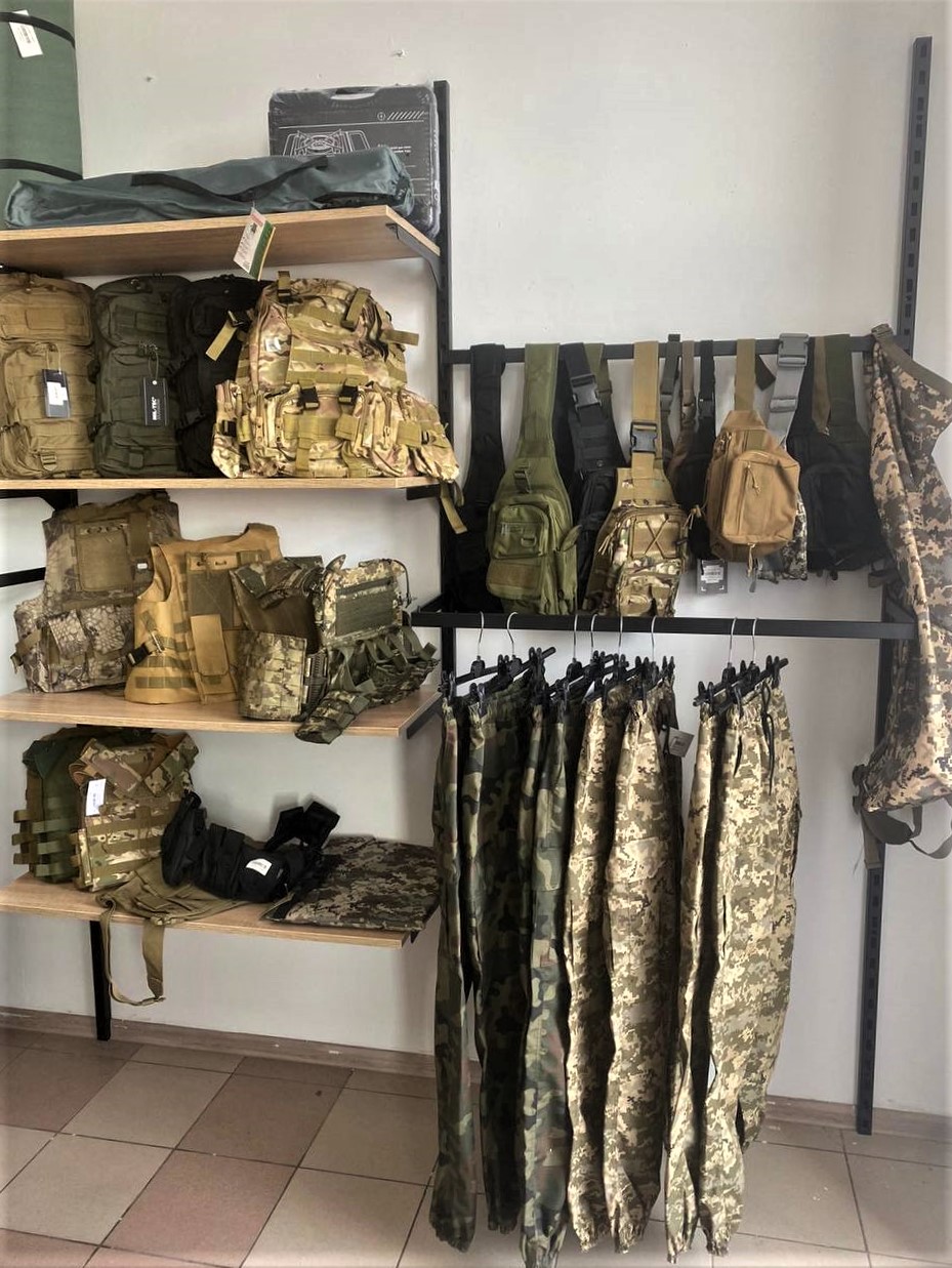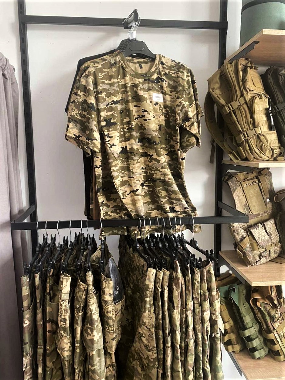 Магазин военной одежды и аксессуаров «Пиксель UA» полностью оборудован торговой мебелью стандартной серии от производителя ROMKOS.
