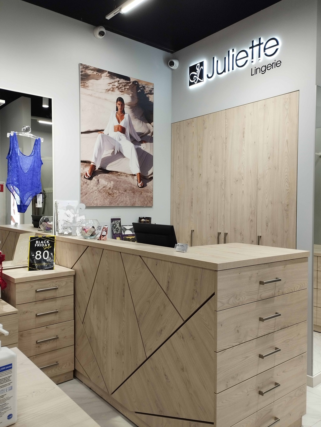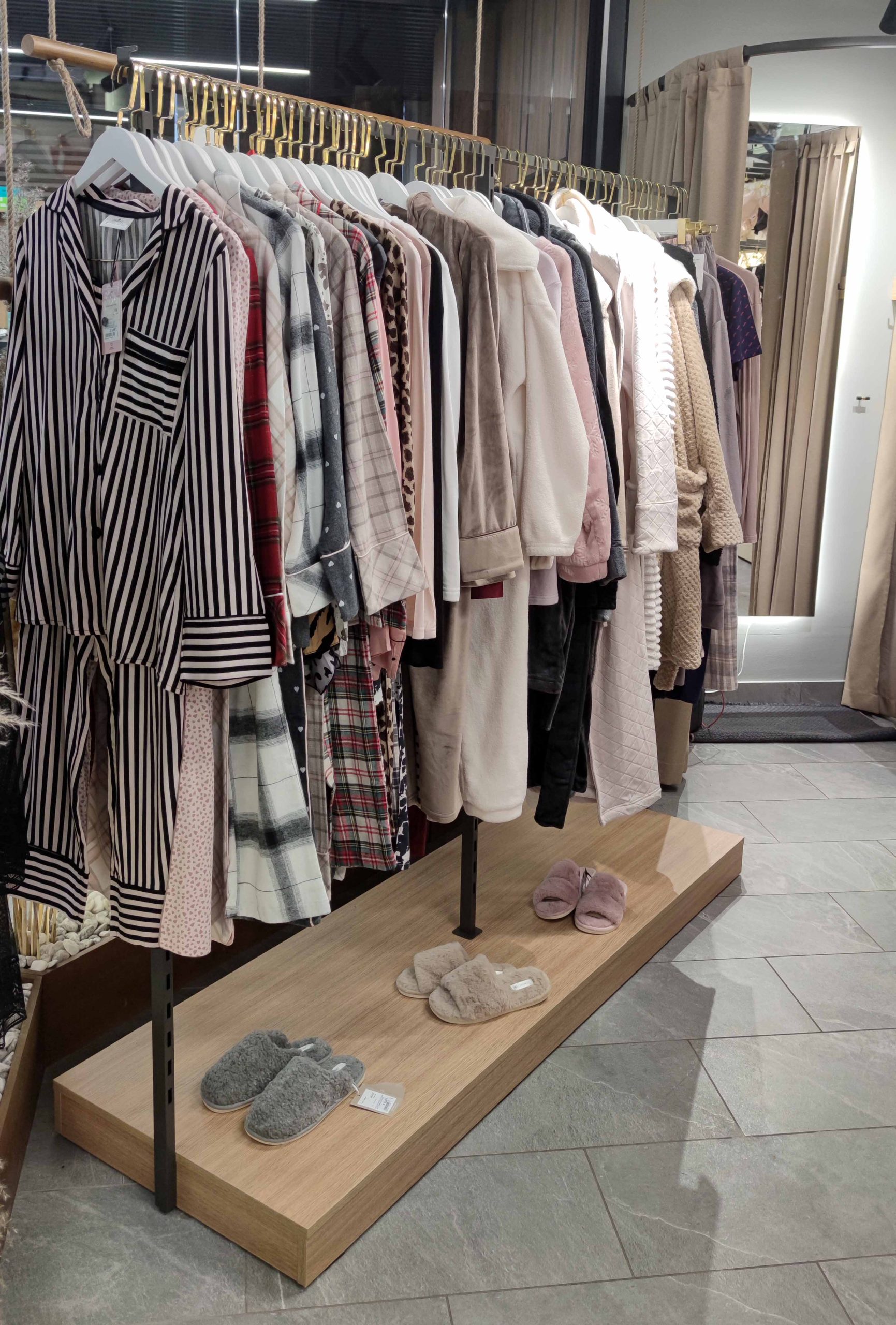 Білизна займає небагато місця, але потребує акуратного викладення. Ми створюємо пристінне обладнання, економпанелі, острівні вішалки та компактні касові стійки, які забезпечують ефективне використання простору.