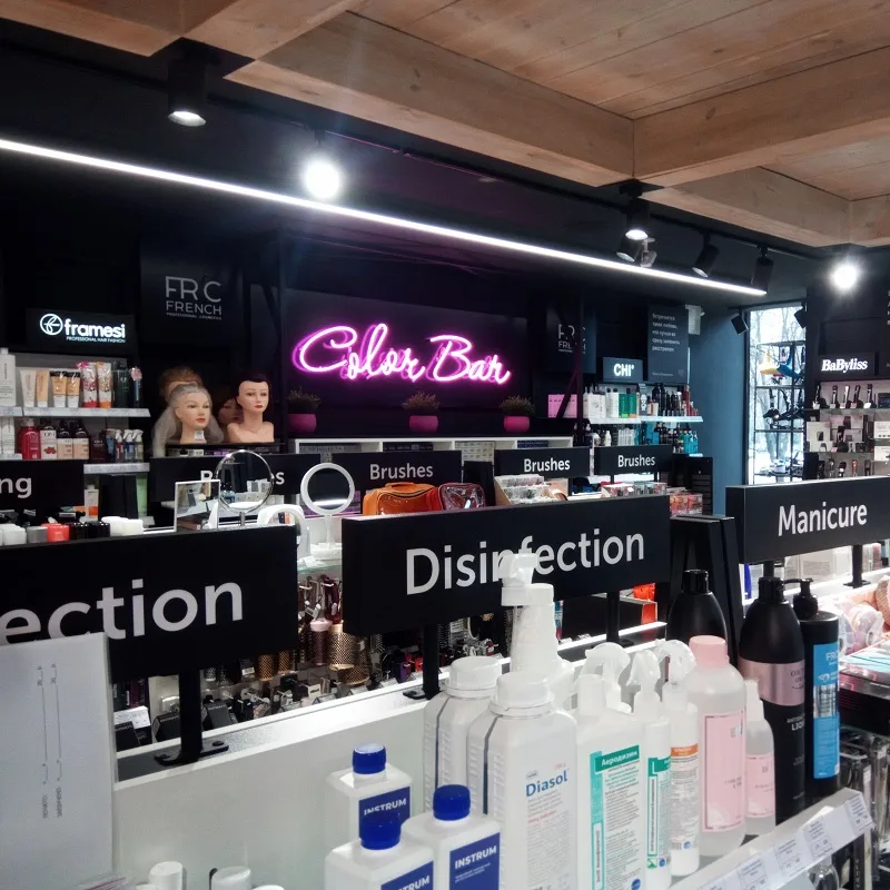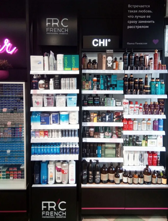 ROMKOS представляє роботу по облаштуванню магазину професійної косметики “French”, розташований в Харкові на Алексіївці, за адресою Пр-т Людвіга Свободи, 35. Майстри манікюру, косметологи, візажисти, перукарі, грумери знайдуть тут всі необхідні для роботи матеріали.